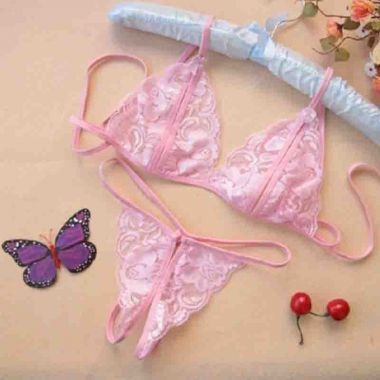 羞羞宝贝性感蕾丝透视内衣裤(粉色)
